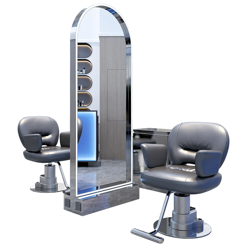 Italian Light Luxury Barber Mirror Modern Business Furniture Hair Salon Double-Sided Mirror LED Fill Light Fashion Floor Mirror