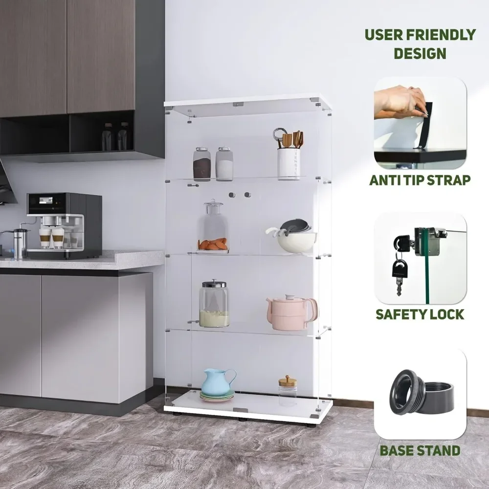 - - Showcase your prized possessions with the Quick Installation Glass Display Cabinet that features 2 doors and 4 spacious shelves for ample storage