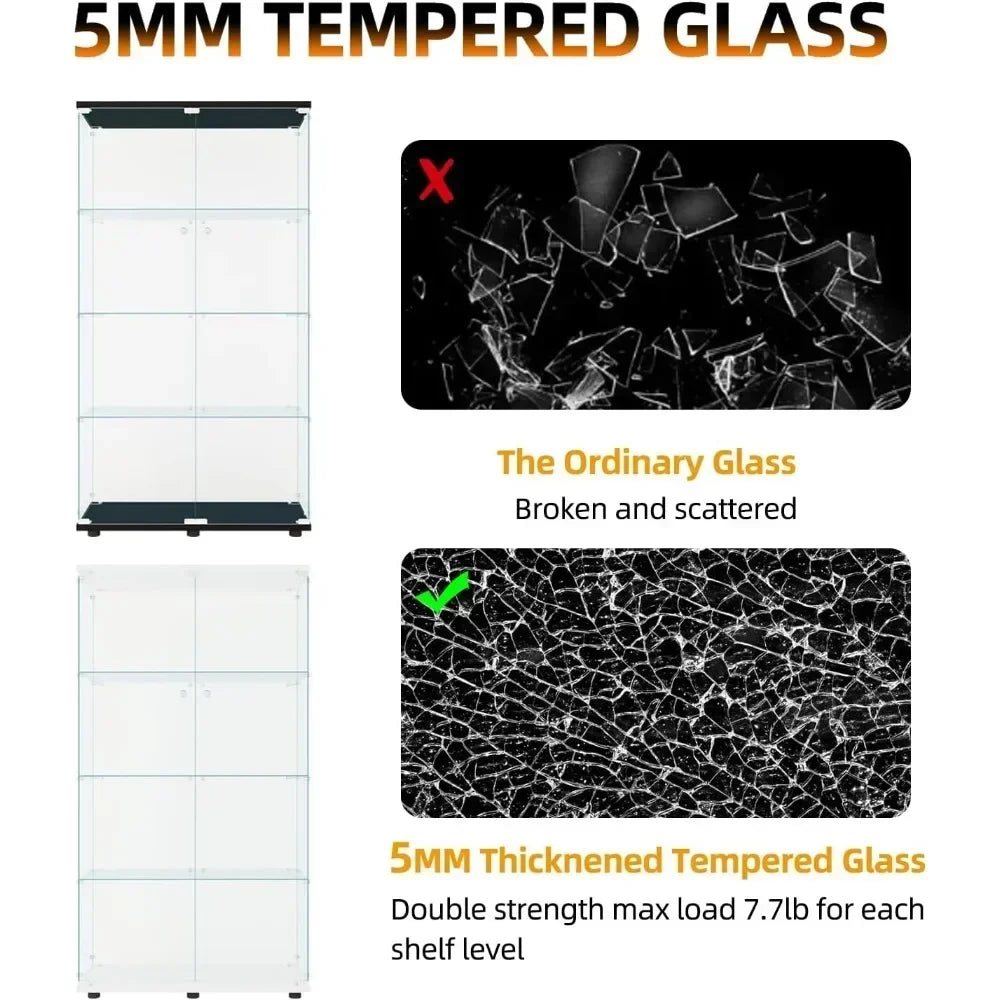- - The clear glass shelves and door offer maximum visibility for all your collectibles, while keeping them protected from dust and damage.