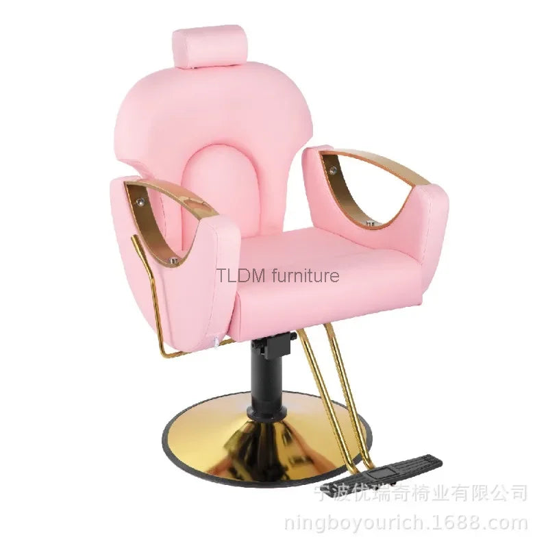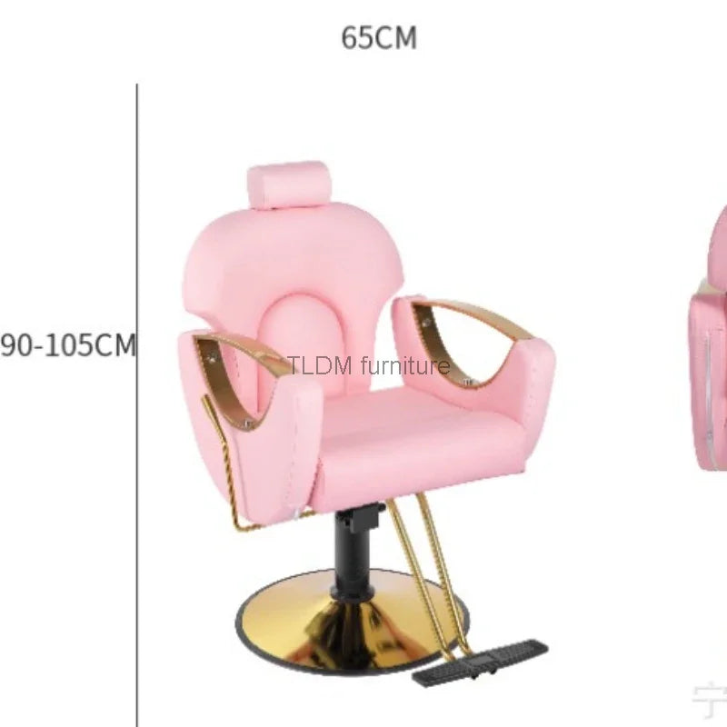 Beauty Salon Simple Hairdressing Chair Pedicure Shampoo Work Makeup Barbering Chair Styling Golden Pink Cadeira Furniture YR50BC