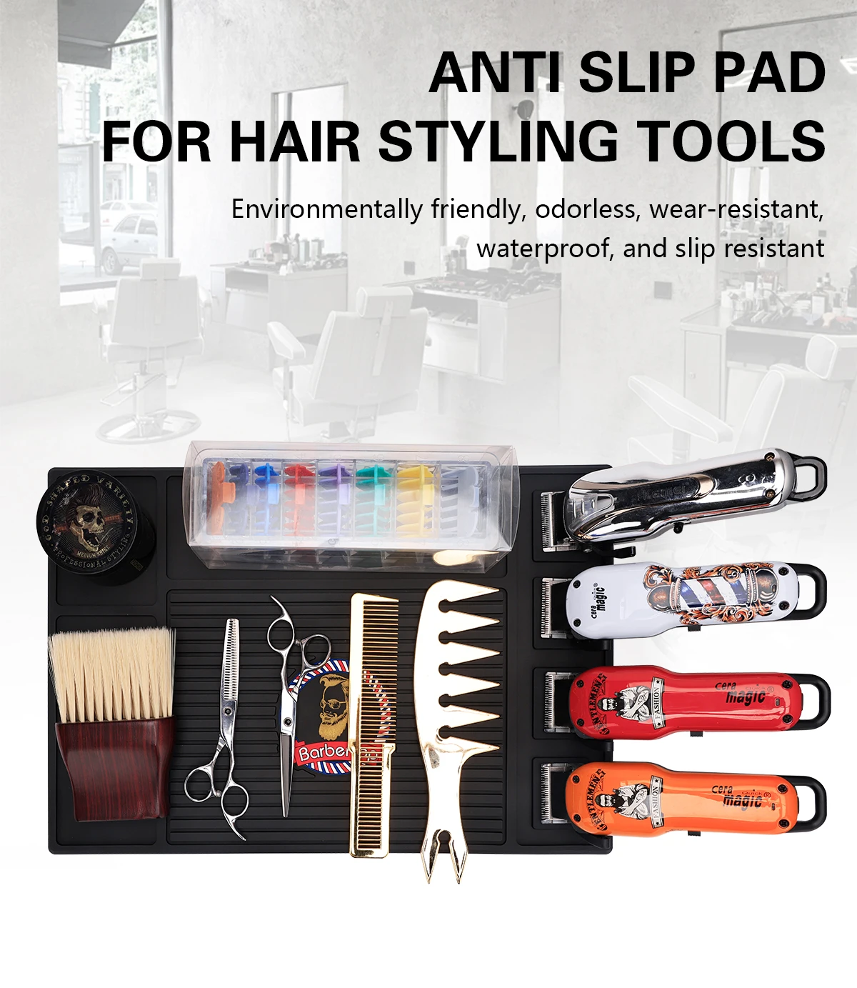 Anti-skid Magnetic Tray Silicone Storage Table Mat Heat Resistant Pad Salon Clippers Scissors Trimmers Holder Barbershop Tools