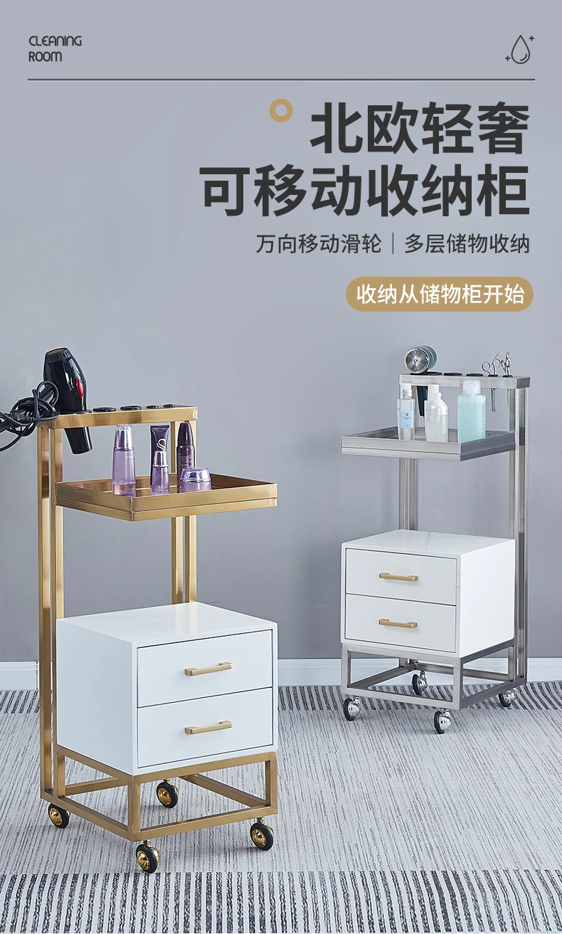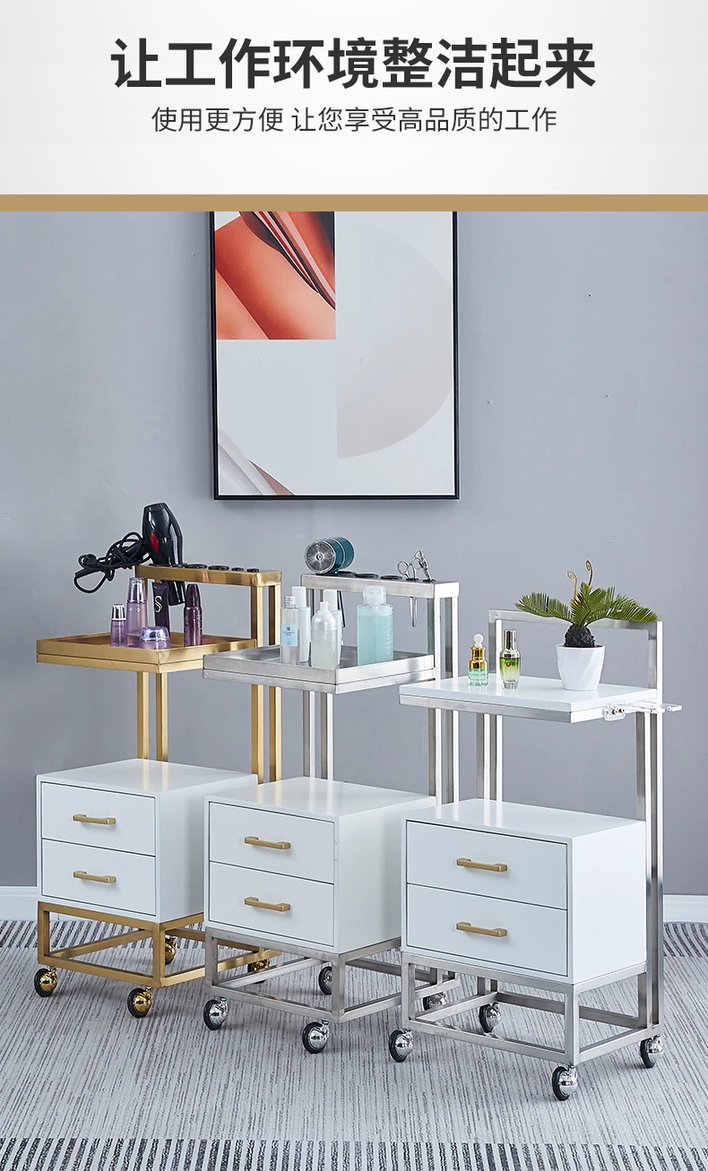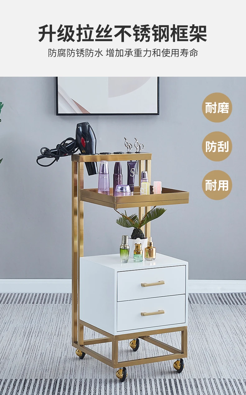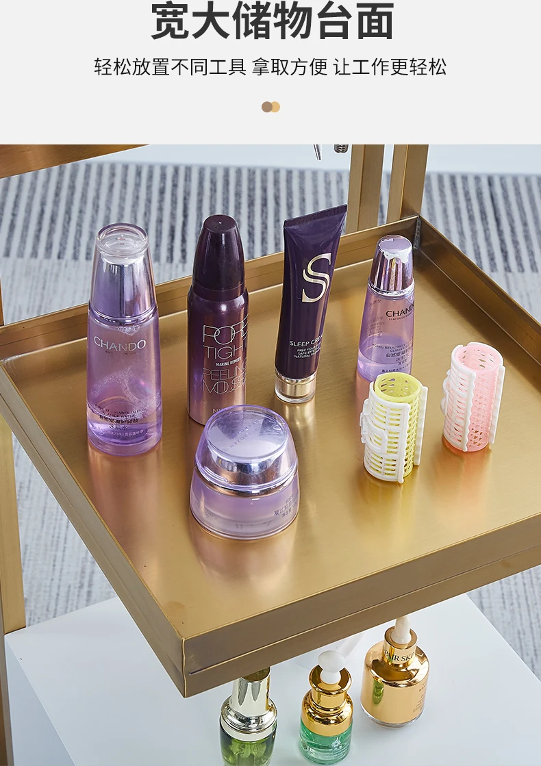 New Arrival Wholesale Luxury Golden Stainless Steel Salon Beauty Cart Rolling Trolley With 4 Wheels